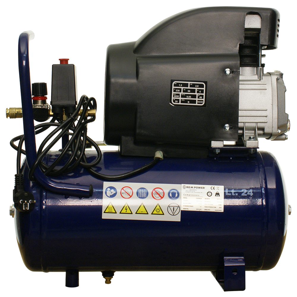 E 243/8/24 , 125 L/min, 8 bar, 24L, 2HP, 230V