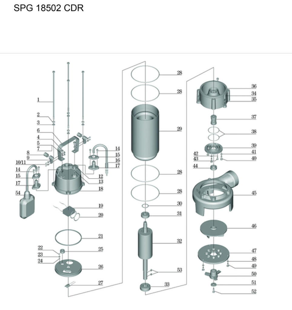 SPG 18502 CDR is a Dirty water submersible pump, with motor power of 1300 W,max flow rate of 18000